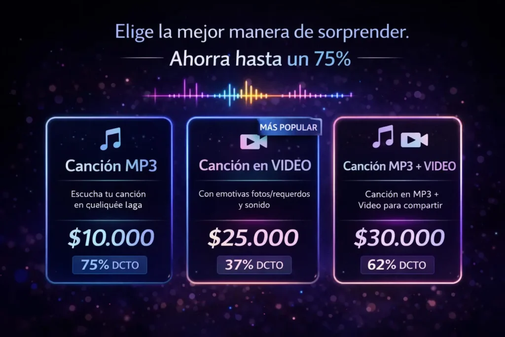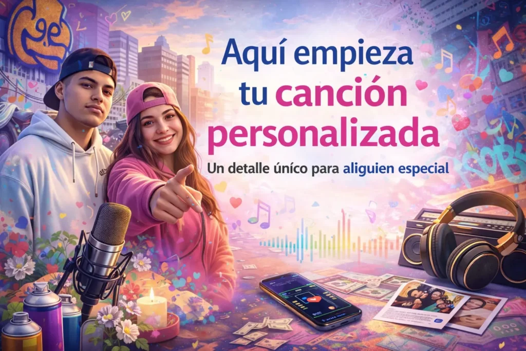 Una canción personalizada con nombres, historia y género musical.